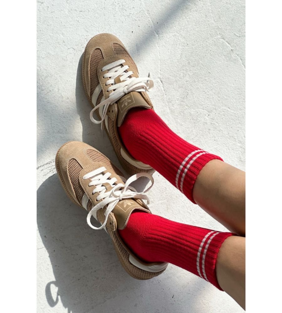 The Boyfriend Socks from Le Bon Shoppe. This slightly longer-than-crew sock features a contrast double stripe. With a sporty charm and playful style, these delightful socks are a fusion of comfort and cuteness. Designed for everyday wear!