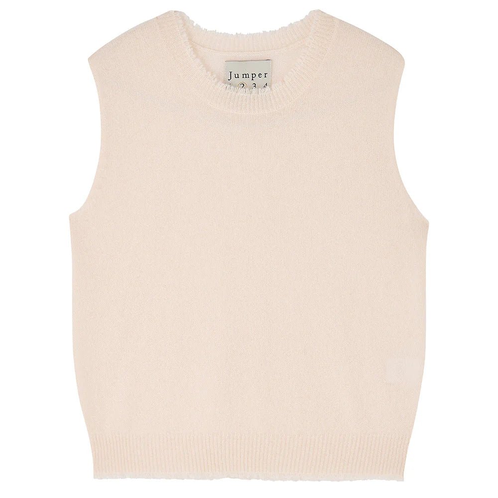 The Jumper 1234 Cashmere Distressed Tank is cut with a crew neckline and a sleeveless ‘tank’ silhouette. Featuring distressed ribs to the neckline and hem, this piece will be a great addition to your transitional wardrobe worn alone or over tees and shirts for a more preppy look. Perfect with denim or a tailored trousers.