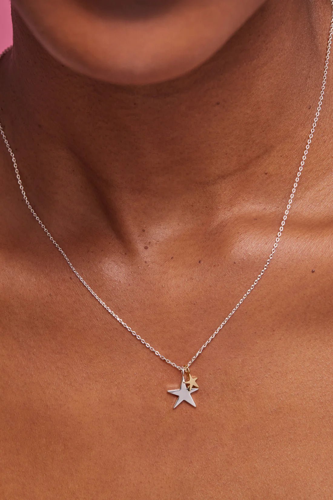 This stunning Silver and Gold Star Necklace from Estella Bartlett will perfectly accessorize your outfit and can be worn day or night. Treat your loved ones to this delicate silver and gold star necklace.