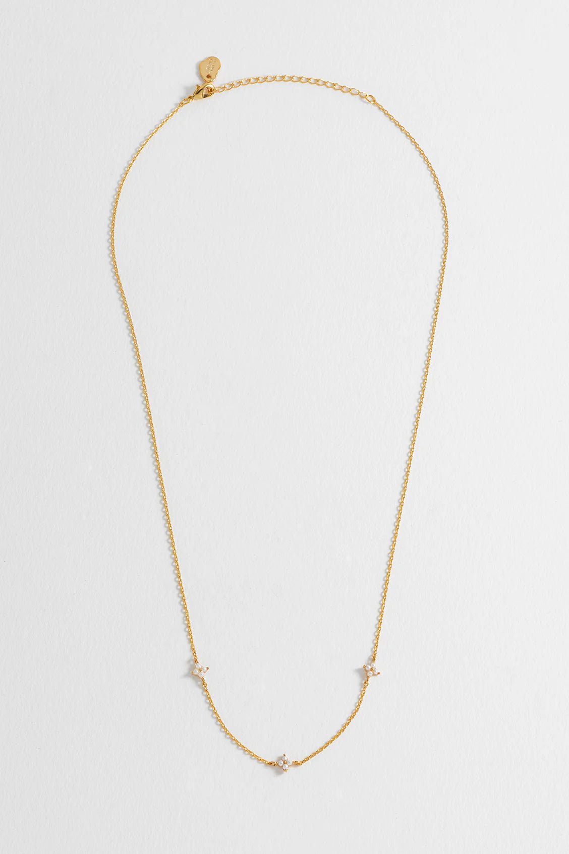 • Featuring three tiny flowers made of faux pearls on a delicate chain
