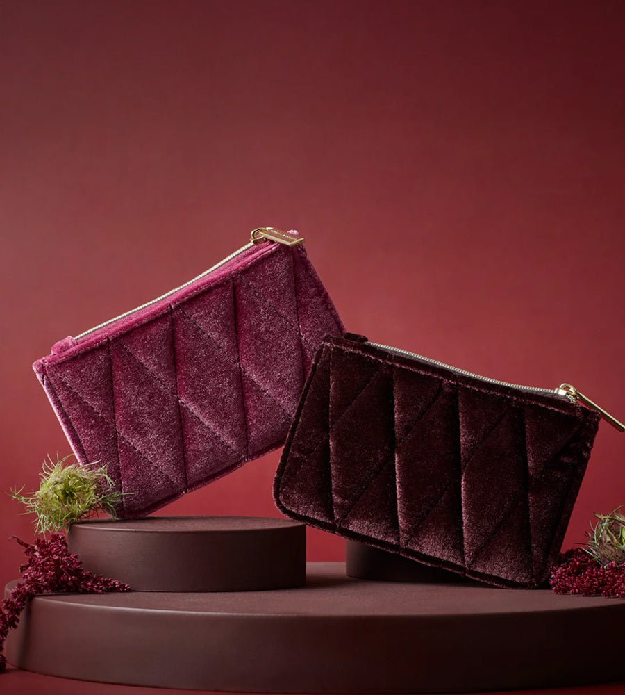 - Quilted card purse burgundy velvet