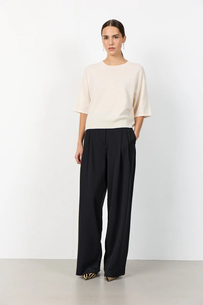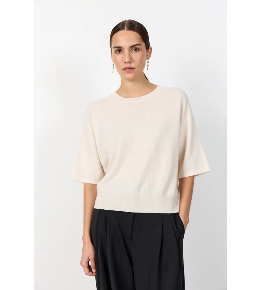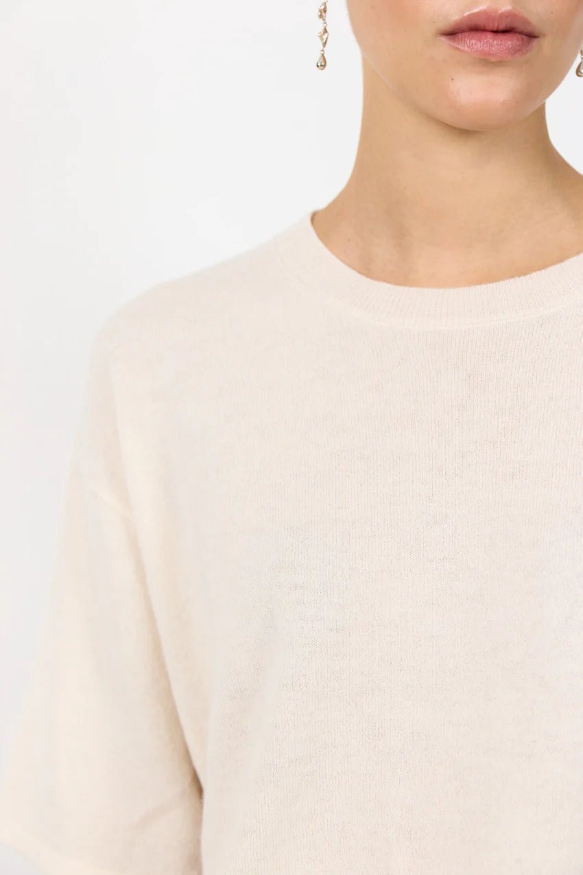 Introducing the LR-Ismaila Knitted Tee in dreamy cream. Crafted from luxuriously soft 100% Merino Wool, this charming tee features a sweet crew neck and delicate short sleeves with an effortlessly relaxed silhouette. The subtle, understated texture adds a touch of sophistication to any outfit. Style it with tailored trousers or pair with your favourite denim for an easy, breezy vibe.