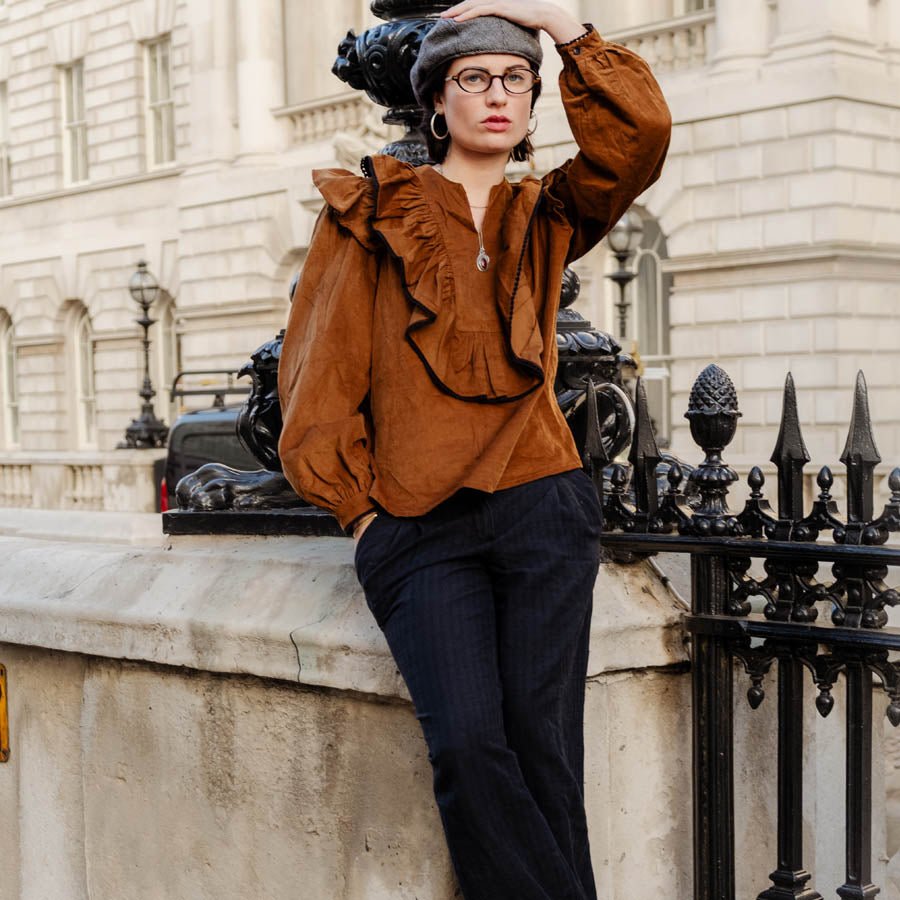 Matilda Ruffle Front Blouse Vicuna Cord