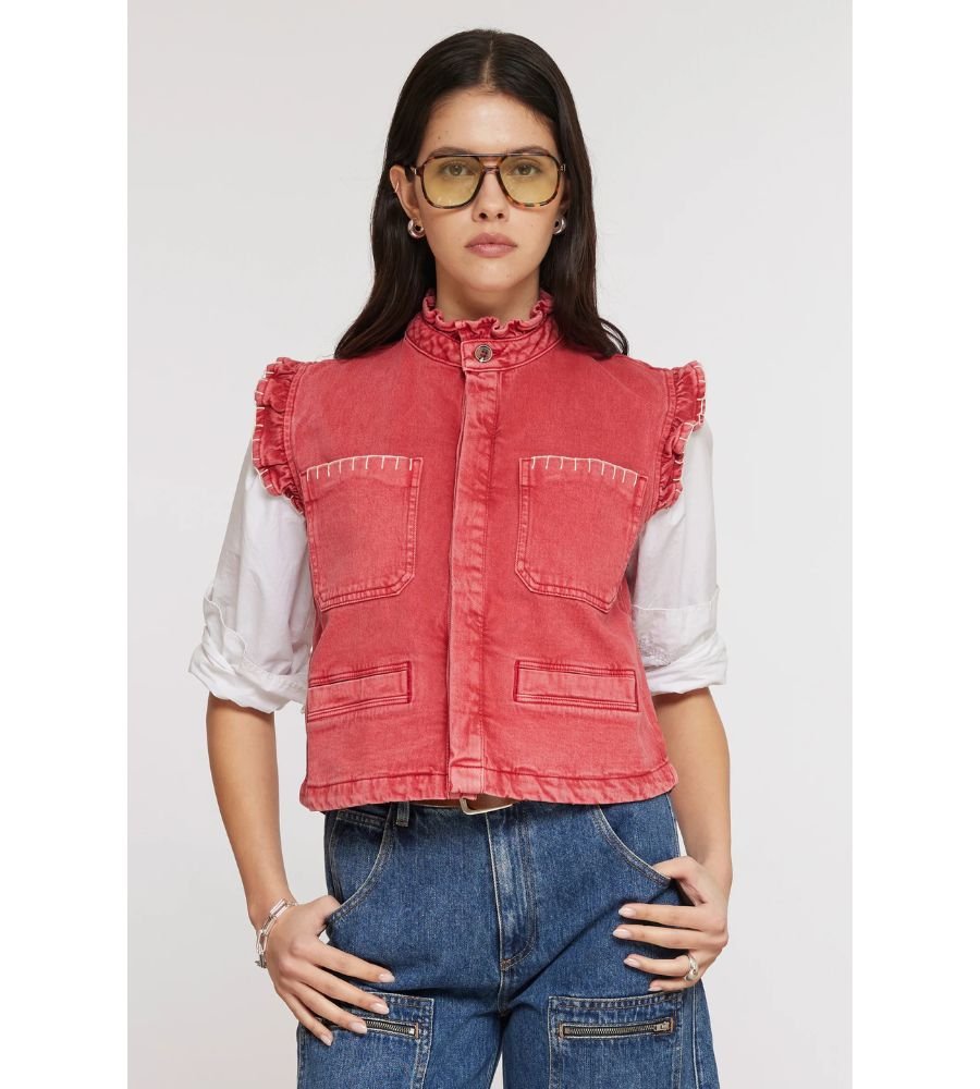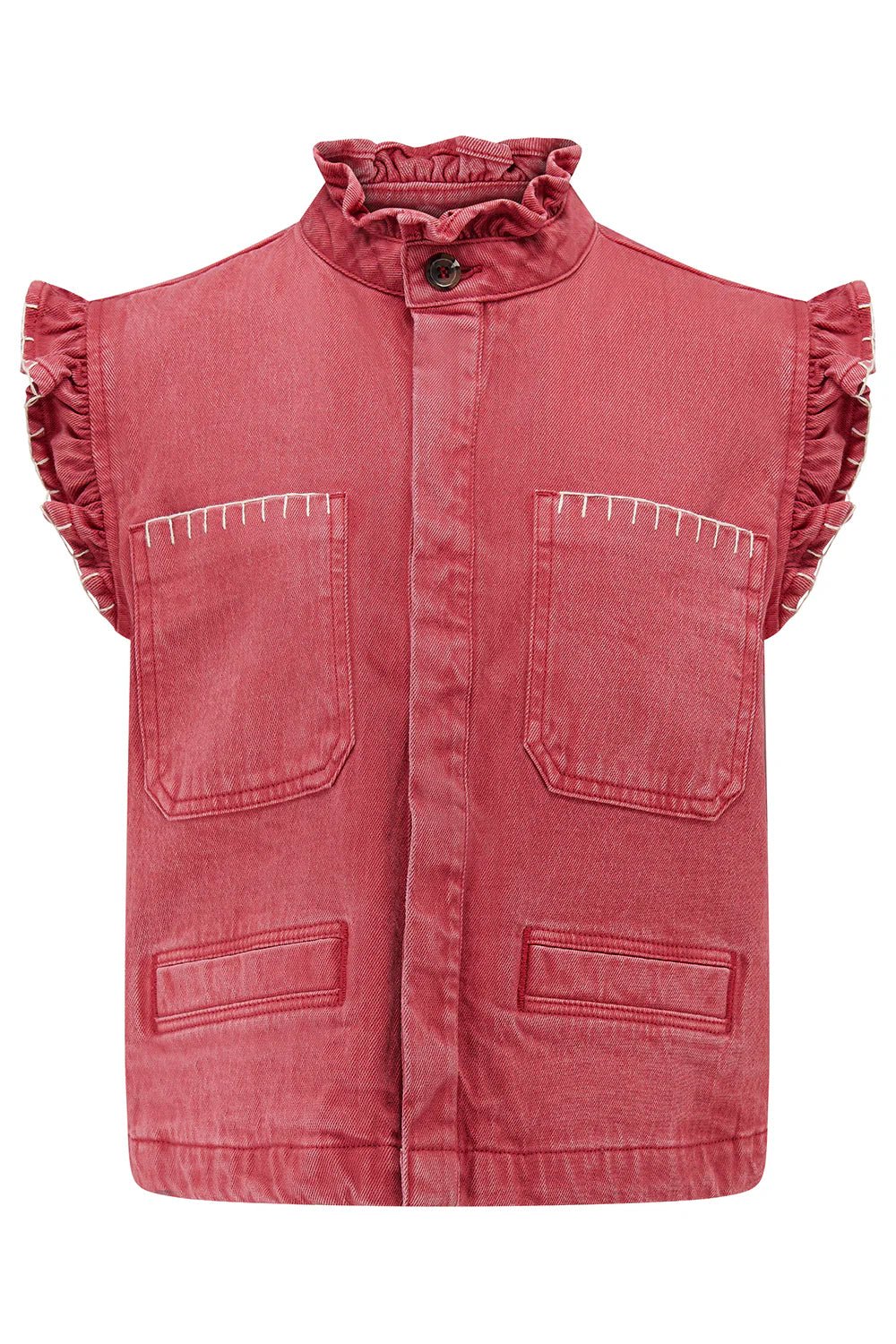 Meet your new wardrobe obsession, the Pablo Waistcoat is back this season in gorgeous vintage red! This adorable piece features a playful frill collar paired with practical patch pockets. The signature blanket stitching gives it that cosy, handcrafted vibe, while the soft, mid weight fabric feels like a gentle hug. With a relaxed fit through the top, it’s the ultimate layering piece that works over everything!