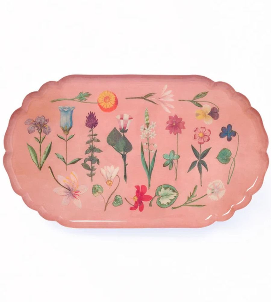 Bring a sense of timeless beauty to your table with this scallop-edged enamel serving tray, featuring exquisite floral illustrations. This food-safe tray is as practical as it is decorative, ideal for serving afternoon treats, styling a shelf, or simply displaying as a piece of functional art. Each tray is handcrafted by skilled artisans in India, and features subtle variations that reflect the beauty of handmade design. A celebration of creativity past and present.