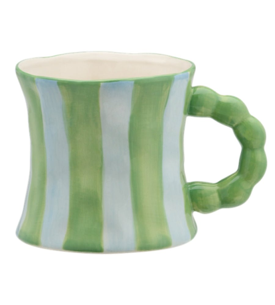 The Serene Mug brings together calmness and playfulness. Hand-painted green and blue stripes and a unique shape ear make this the perfect mug for a calm morning or relaxed coffee moment.