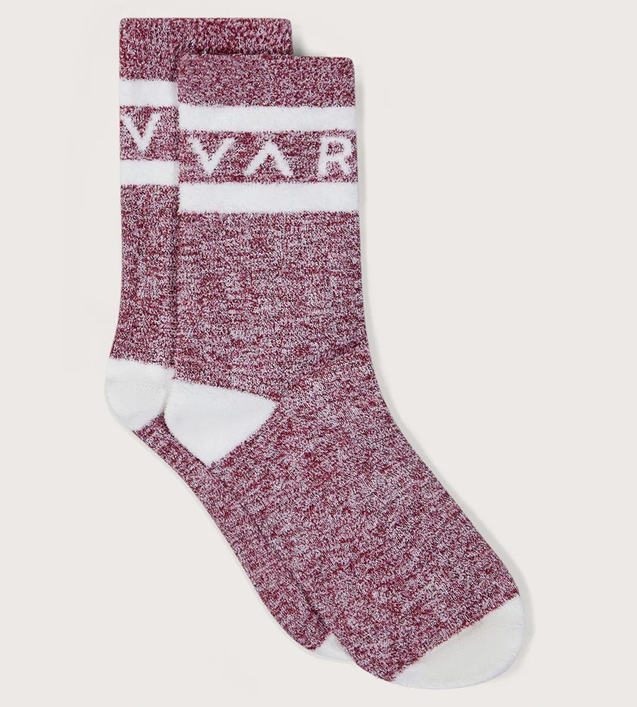 Woven in a bouclé-effect yarn, the Spencer Marl socks feature a Marl effect, a classic Varley logo stripe, and contrast heel and toe.