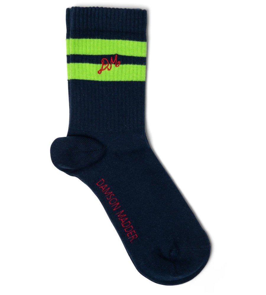 Add some vibrant colour to your sock drawer with these Damson Madder calf-length socks. With signature DM embroidery and a comfy organic cotton blend, they’re perfect on their own or styled with DM clothing.