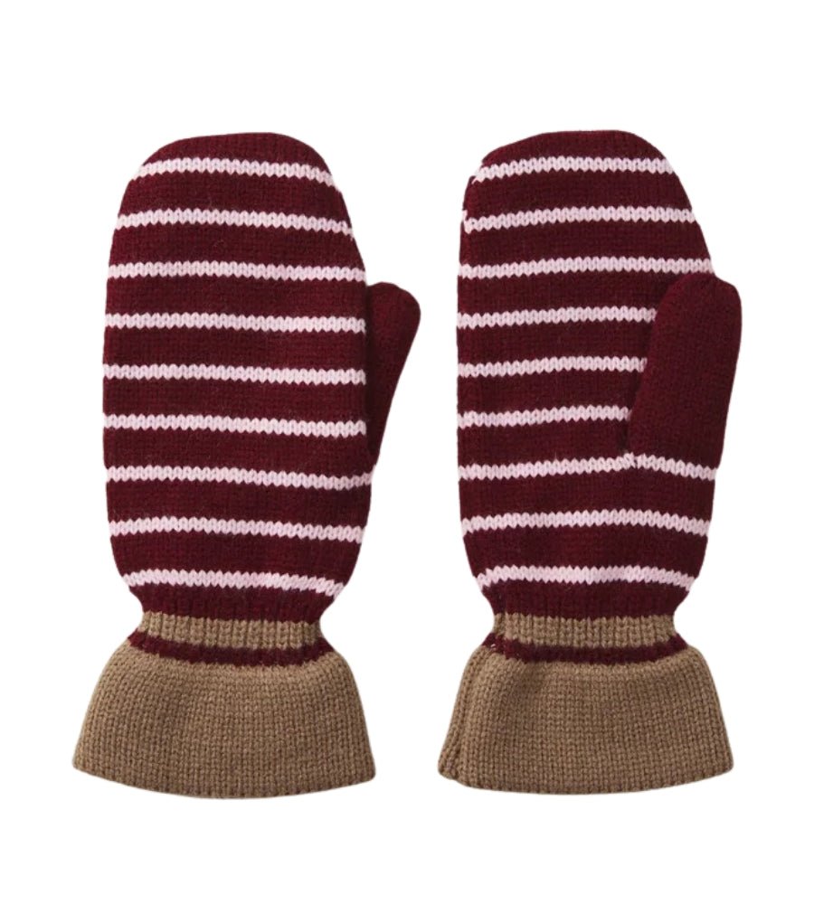 Thin Striped Emerald Mittens Burgundy