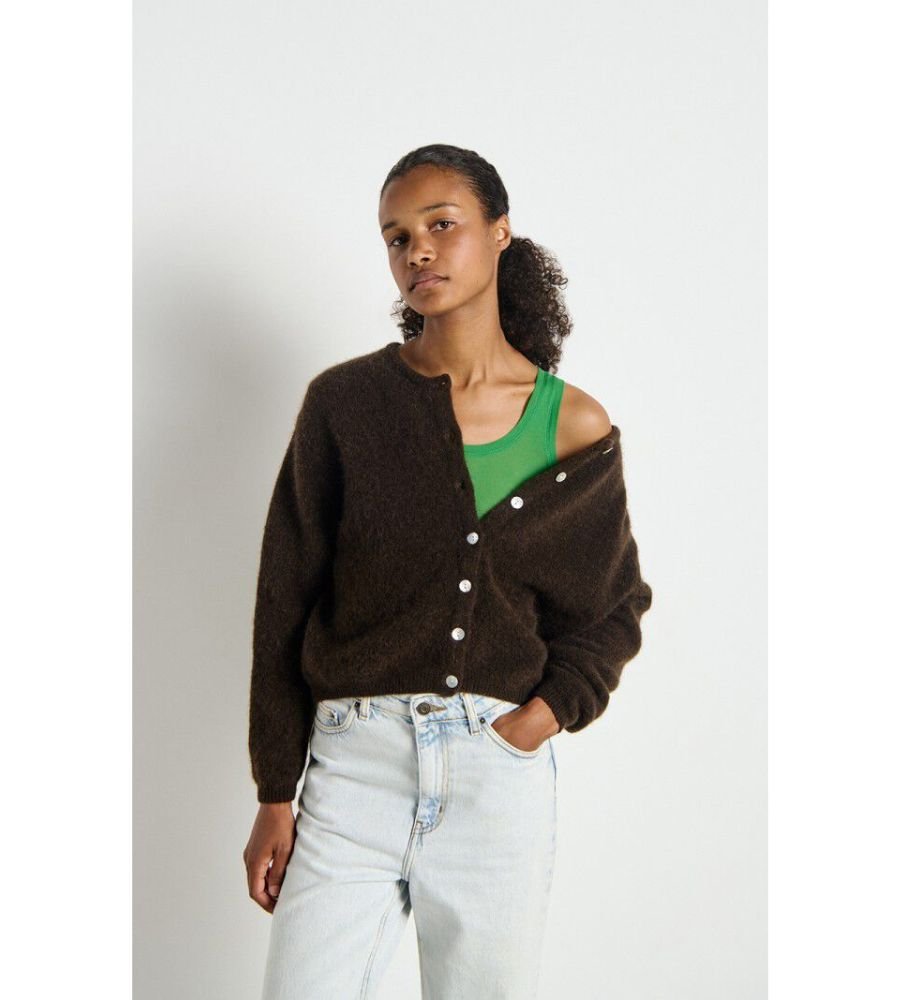 The Vitow cardigan from American Vintage is back this season in multiple gorgeous colour ways. With long sleeves and a buttoned centre, this soft, fluffy textured cardigan is perfect for those slightly cooler days. The Vitow has a round neck and a slightly cropped fit.